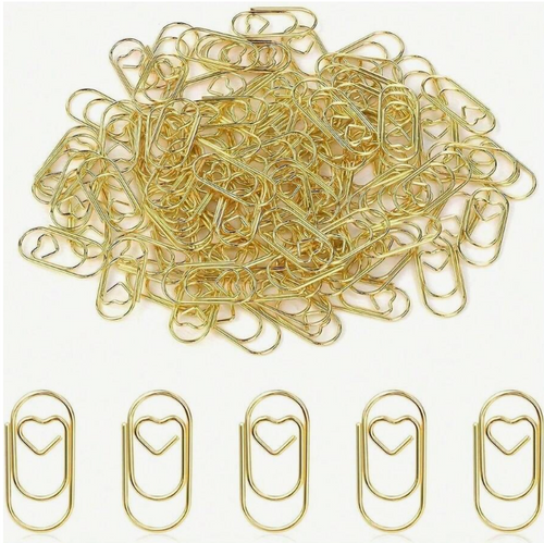 100pcs Mini Gold Heart Paper Clips – Cute Office & Study Supplies